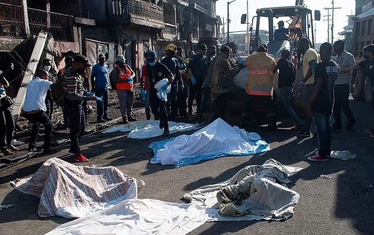 Thi thể nạn nhân sau vụ nổ xe bồn ở Haiti (Ảnh: Reuters).